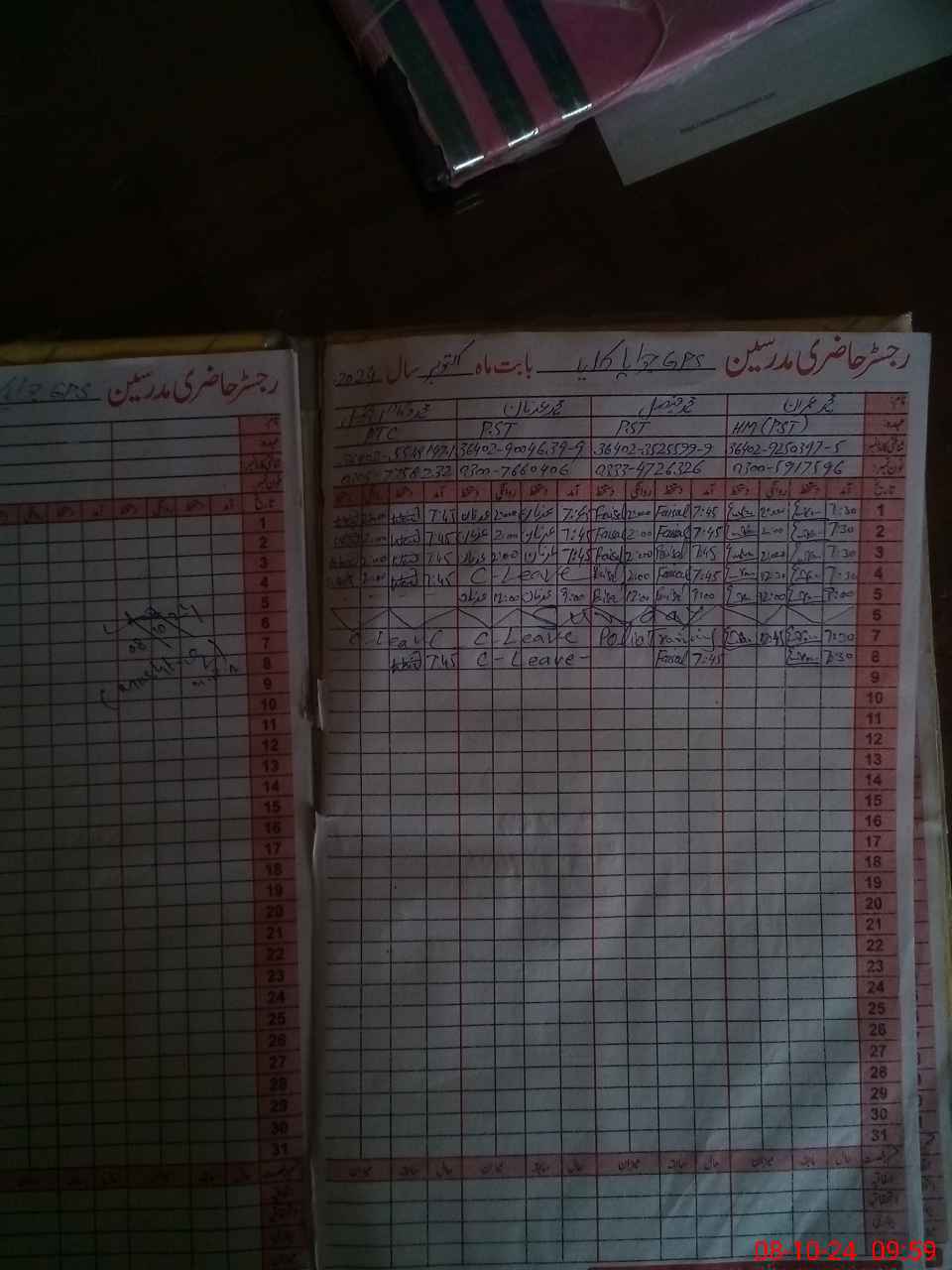 | Leave | Duty | Absent | Maternity | Medical | Ex- Pak |