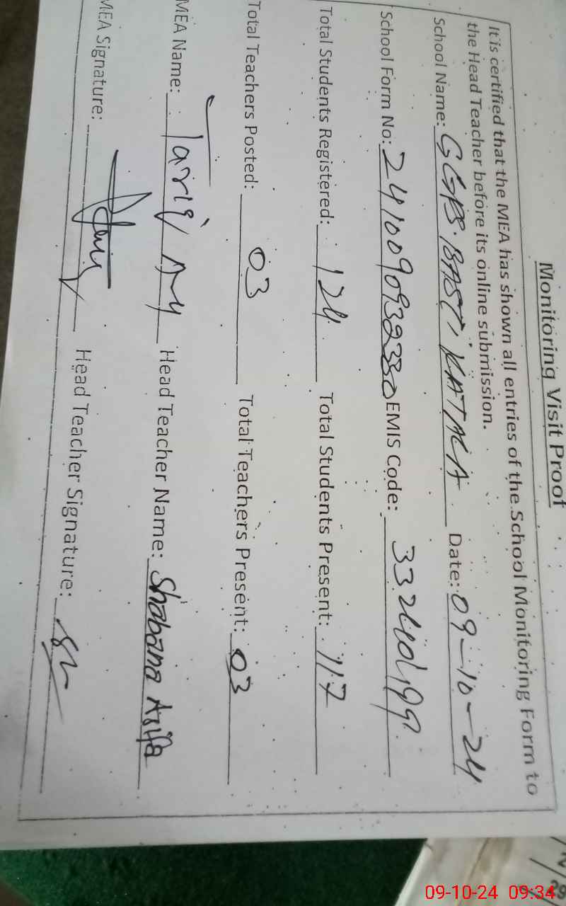 | EMIS Code: 33240499 | Name of School: GGPS BASTI KATALA | |||
