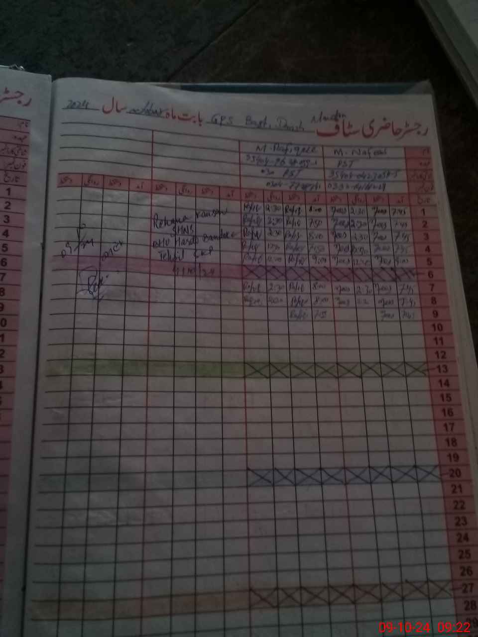| CNIC | Full Name | Designation | R/C | Absence During Last Calender Month |