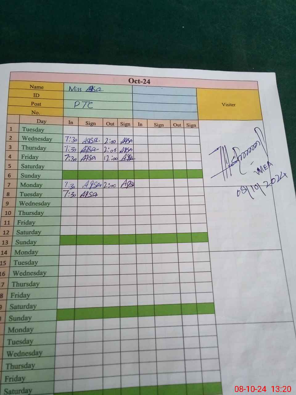 | Monitoring Date: 08-10-2024 | Start Time: 08-10-2024 12:53 PM | End Time: 08-10-2024 01:29 PM | Name of MEA: MU**** AS**** | |