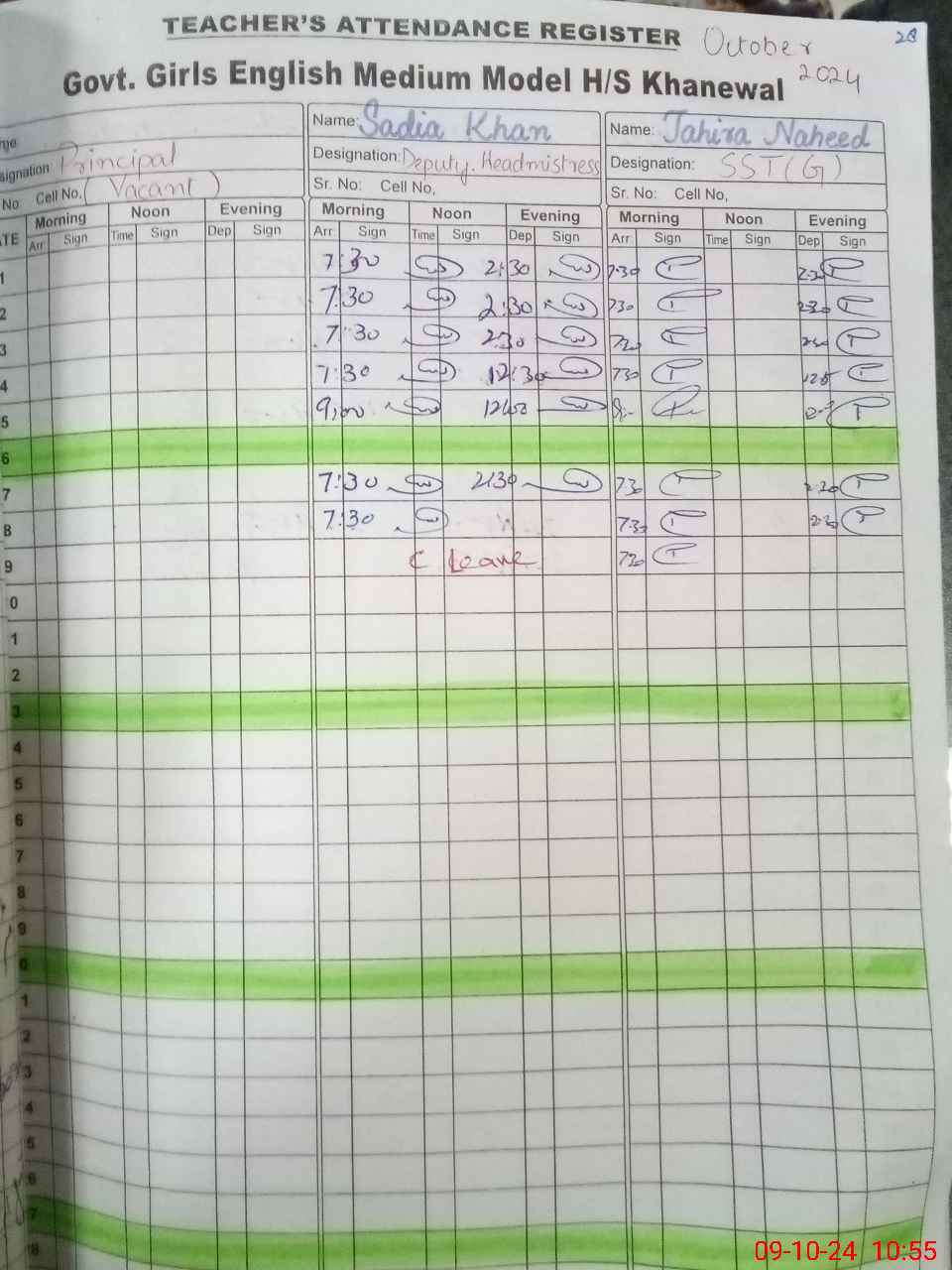 | CNIC | Full Name | Designation | R/C | Absence During Last Calender Month |
