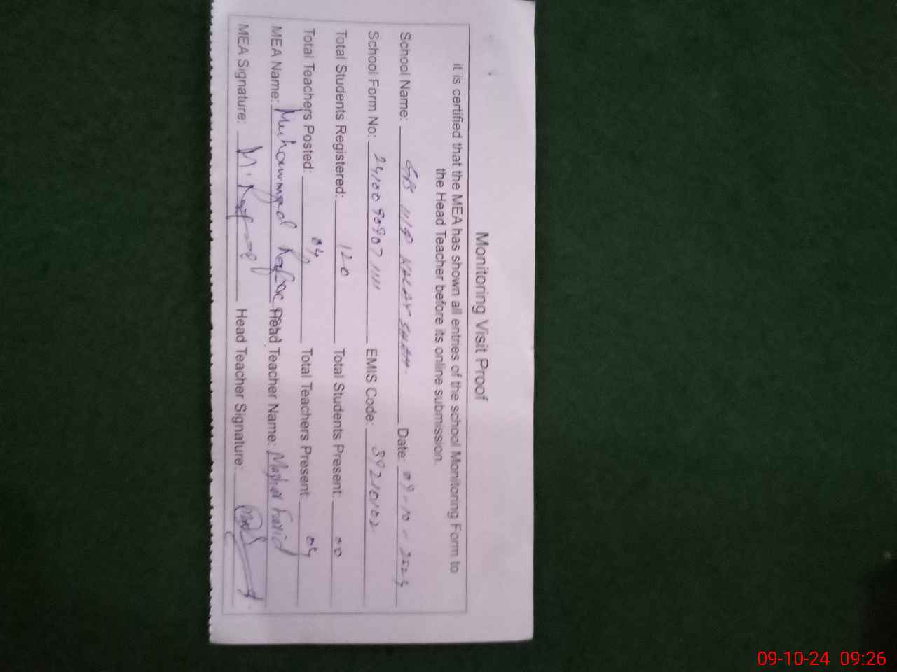 | EMIS Code: 39210102 | Name of School: GPS 11/SP P.O 8/S.P PAKPATTAN | |||