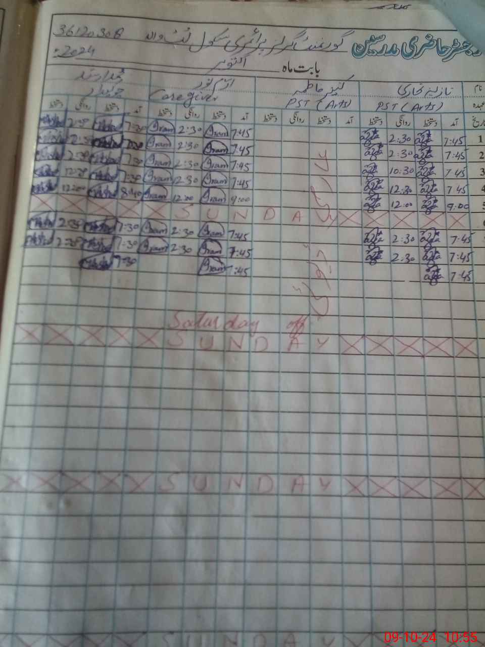 | Remarks (Use Separate Page if Required): PST kaniz Fatima attached from this school to GGES Kabir Pur sadar Multan wef 16october 2023 to till further order Only single Teacher running this school | |||||