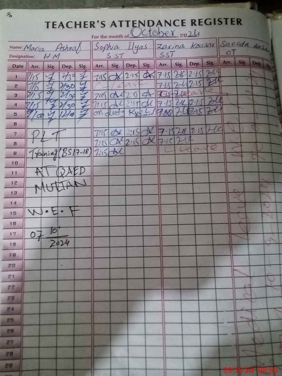 | Leave | Duty | Absent | Maternity | Medical | Ex- Pak |