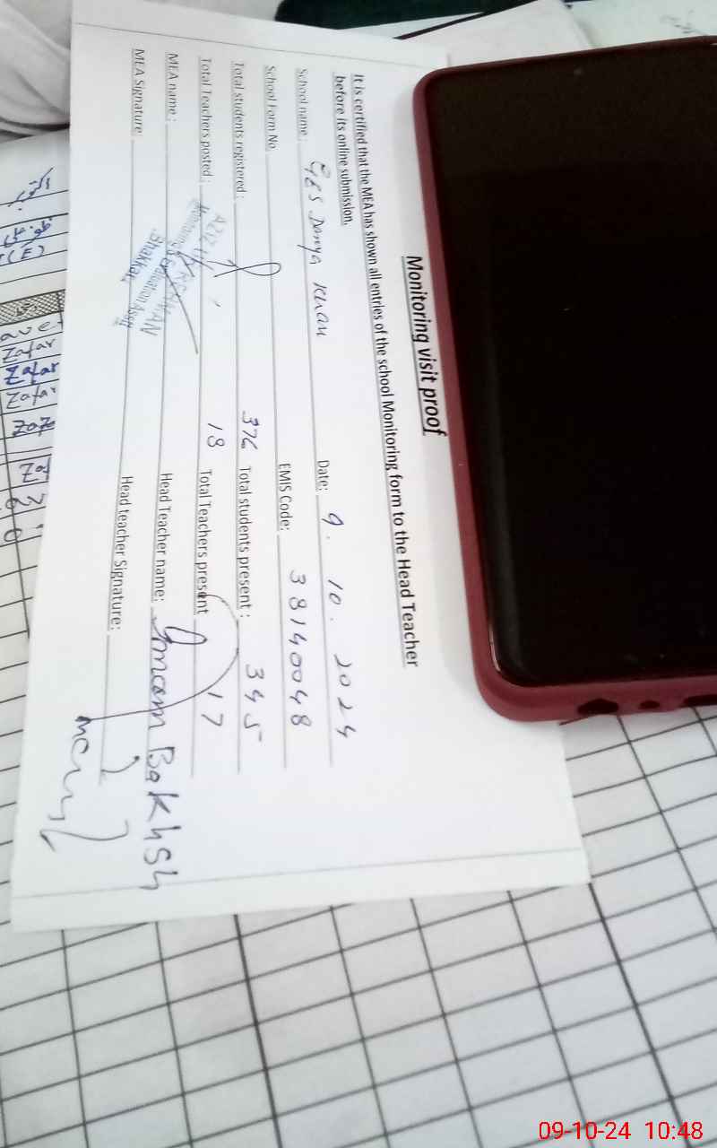| Attendance Register | Head Teacher | MEA with School | Visit Proof |