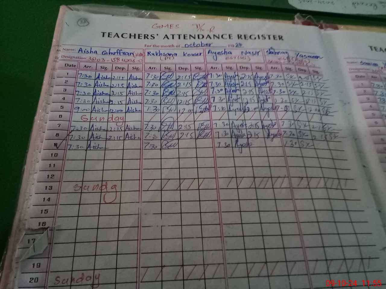 | Name: Ay**** Gh**** Designation: (School Headmaster's/Headmistress's) SST Phone/Cell Number: 03**** |