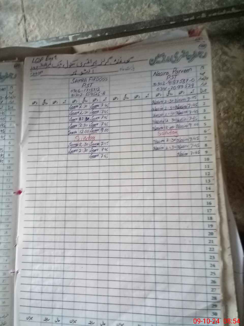 | Name: NA**** PE**** Designation: (School Headmaster's/Headmistress's) PST/PTC/JV Phone/Cell Number: 03**** |