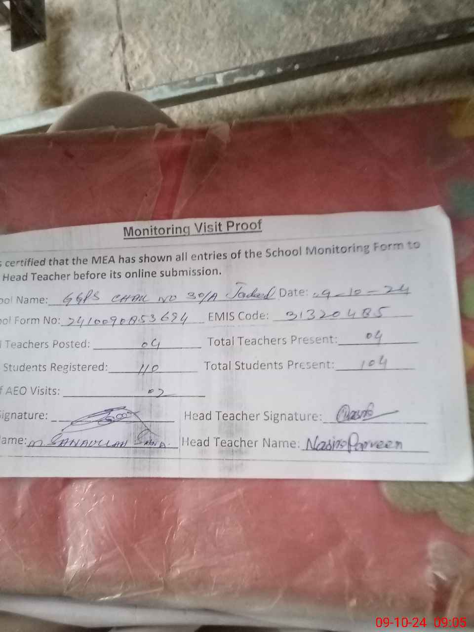 | EMIS Code: 31320485 | Name of School: GGPS CHAK NO.30/A JADEED | |||