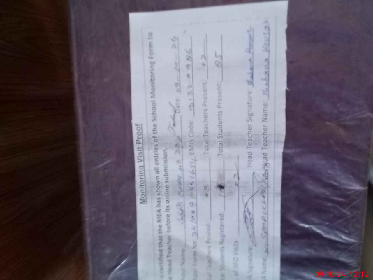 | Certified that this School was Inspected by the Undersigned MEA/DMO Today and the Information Stated Above is as Per Record. | |||||