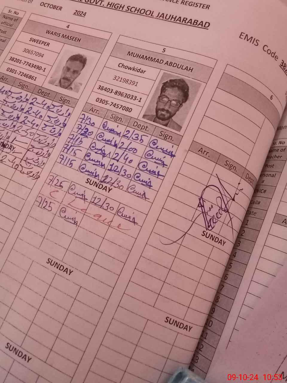 | CNIC | Full Name | Designation | R/C | Absence during last cal. month |