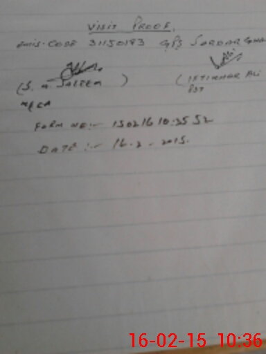 | Monitoring Date: 16-02-2015 | Start Time: 16-02-2015 10:00 AM | End Time: 16-02-2015 10:37 AM | Name of MEA: Mu**** Sa**** BN**** 33 | |