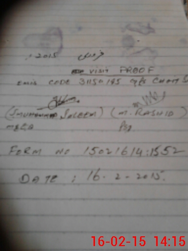 | School Visited by School Health & Nutrition Supervisor (No. of Visits) | 1 | Name1: | M Riaz Ahded Qadri | Name2: | |