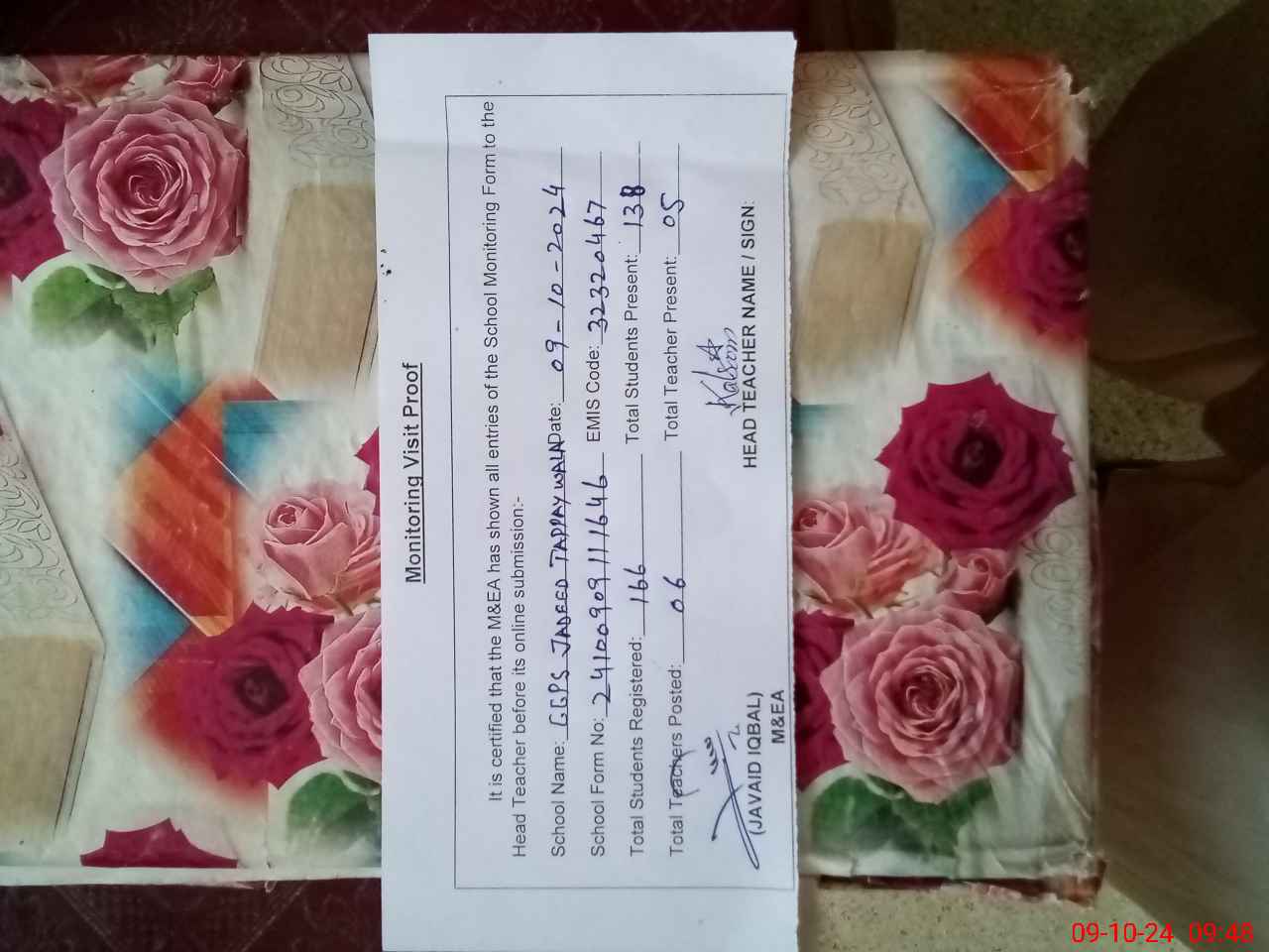 | EMIS Code: 32320467 | Name of School: GGPS JADEED TAPPAY WALA | |||