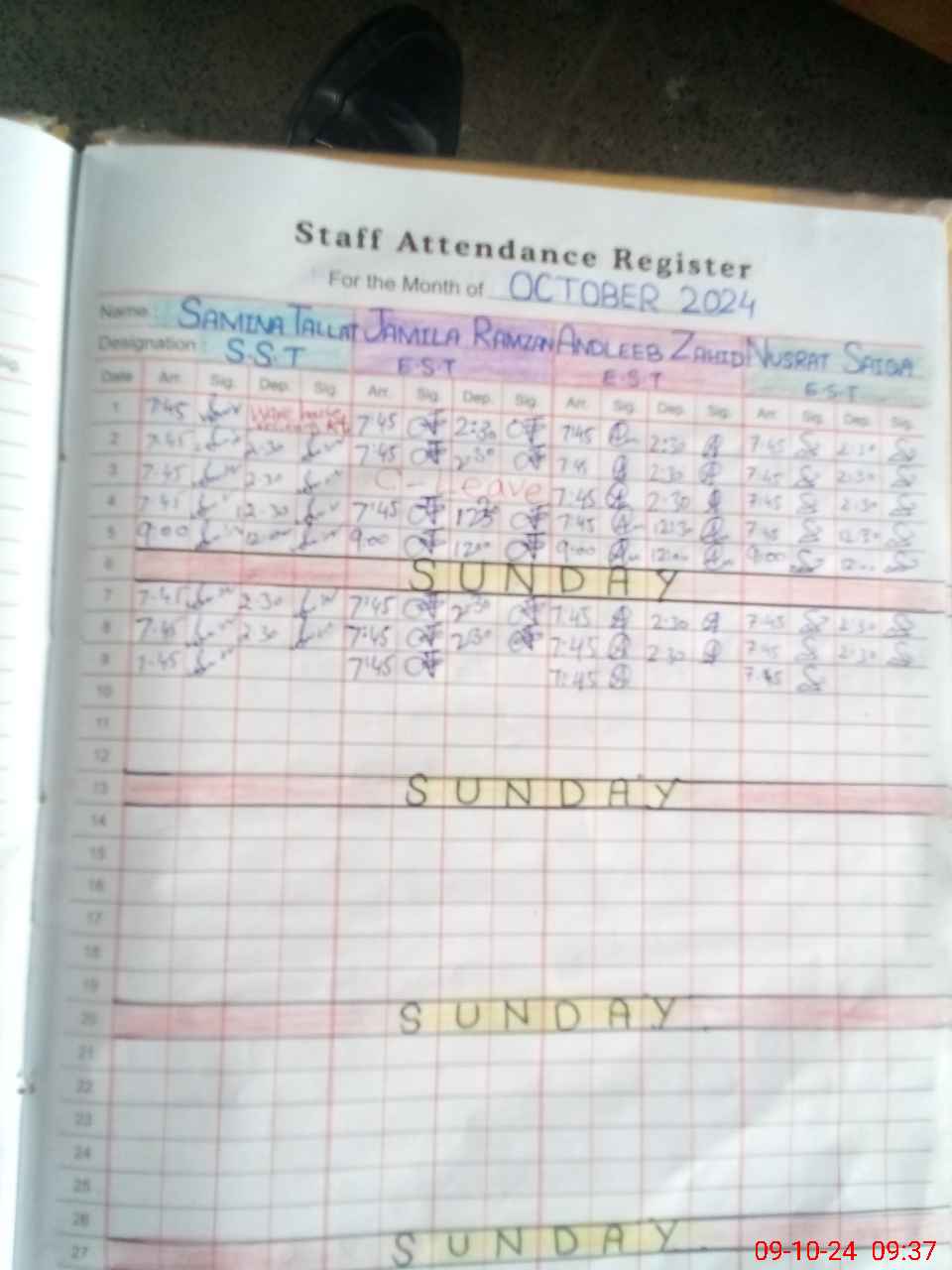 | Leave | Duty | Absent | Maternity | Medical | Ex- Pak |
