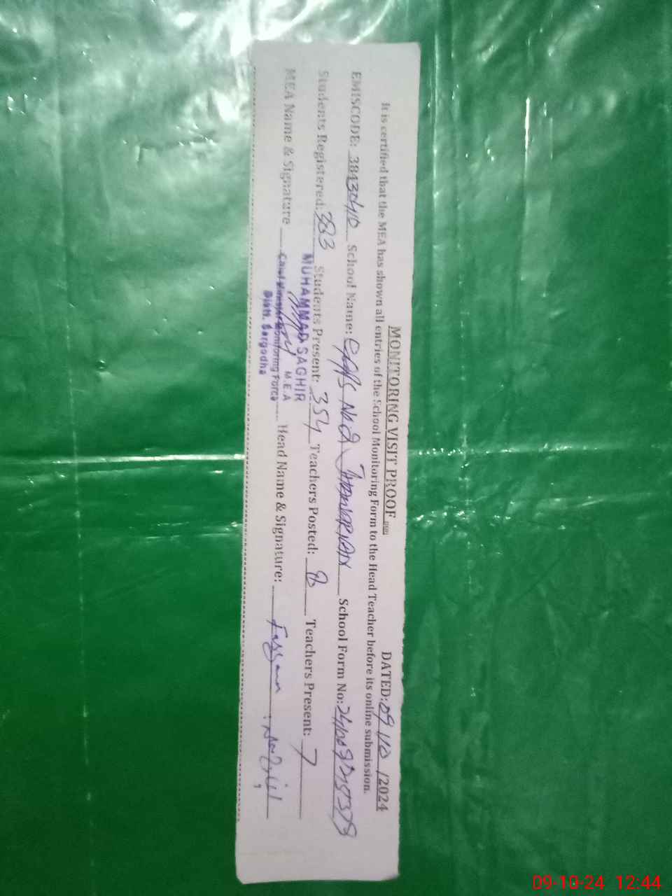 | Certified that this School was Inspected by the Undersigned MEA/DMO Today and the Information Stated Above is as Per Record. | |||||