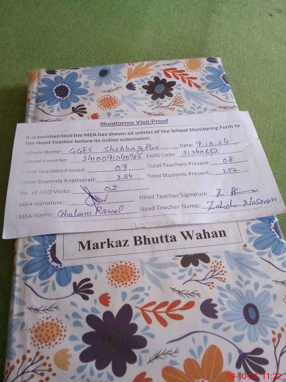 | EMIS Code: 31340652 | Name of School: GGES SHEHBAZ PUR | |||