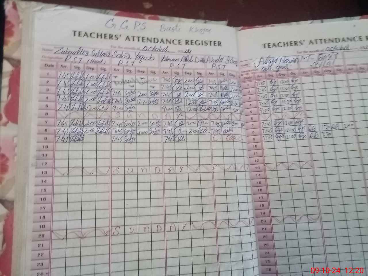 | Remarks (Use Separate Page if Required): 2nd staff Teaching attendence register and 2nd shift students attendence register not provided | |||||