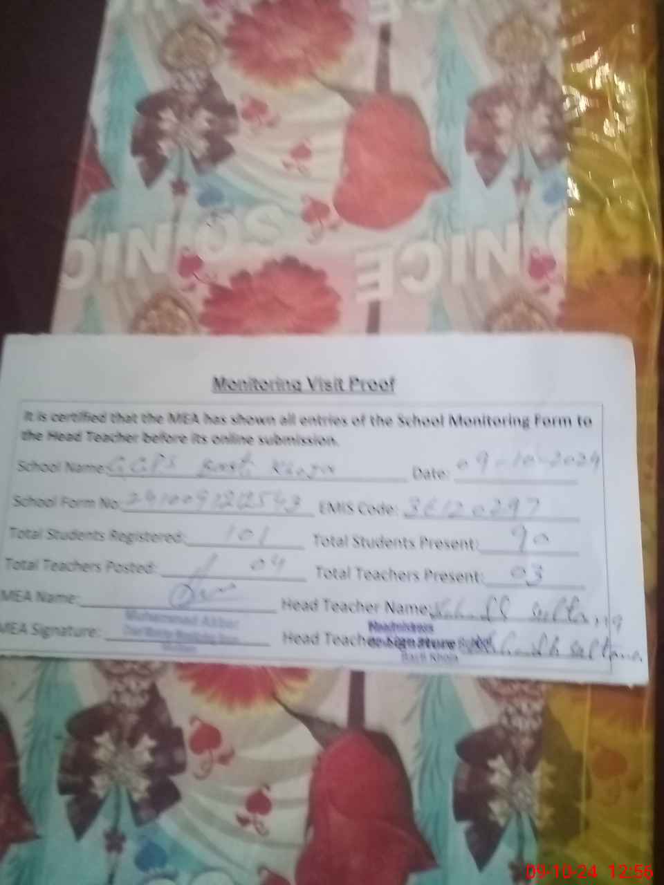 | Certified that this School was Inspected by the Undersigned MEA/DMO Today and the Information Stated Above is as Per Record. | |||||