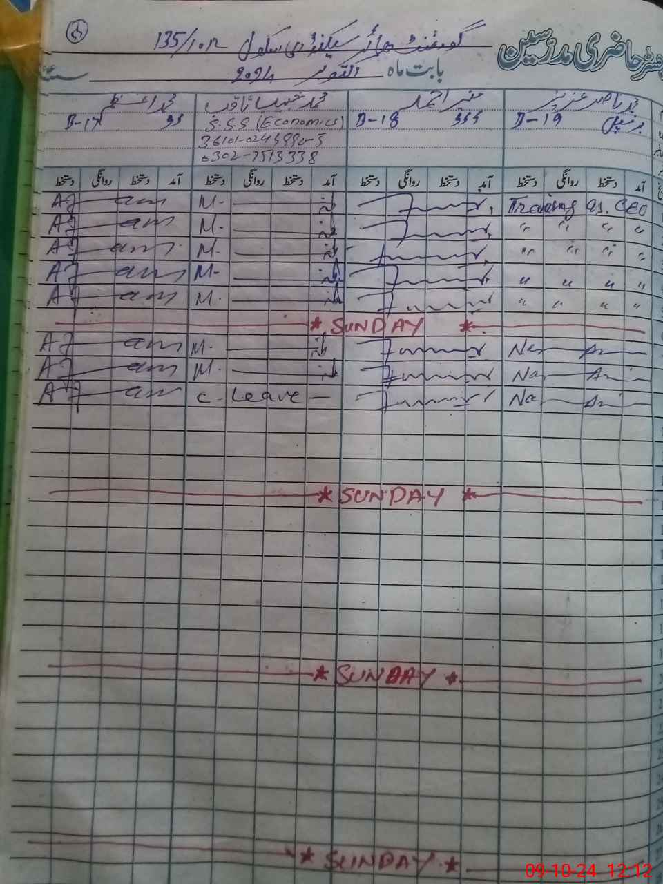 | CNIC | Full Name | Designation | R/C | Absence During Last Calender Month |