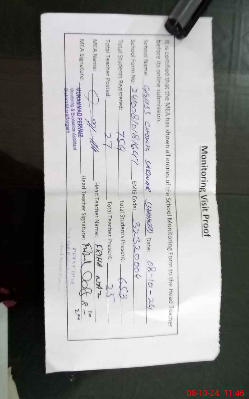 | EMIS Code: 32320004 | Name of School: GGHSS CHOWK SARWAR SHAHEED | |||