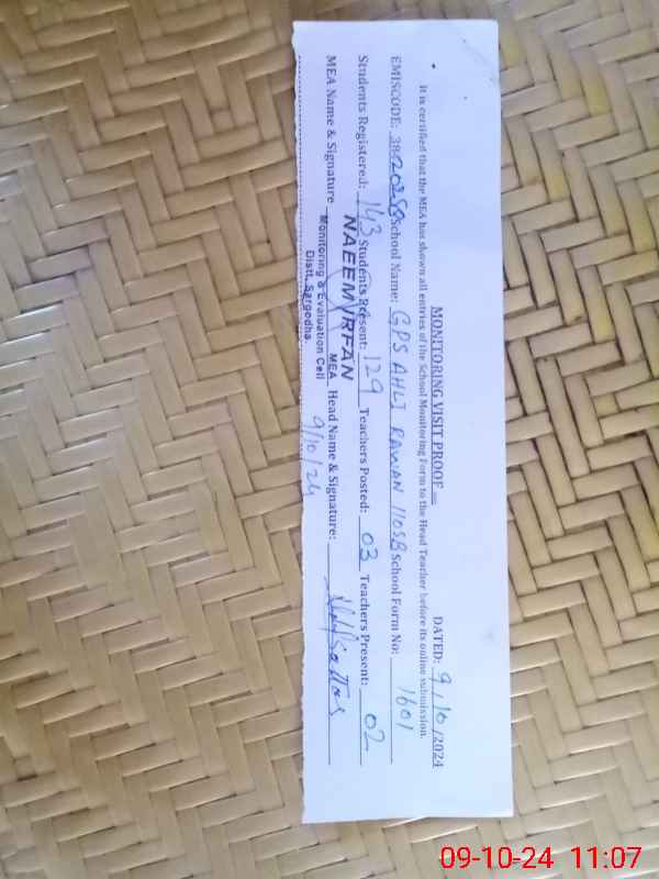| EMIS Code: 38420258 | Name of School: GPS AHLI RAWAN CHAK NO. 110 SB | |||