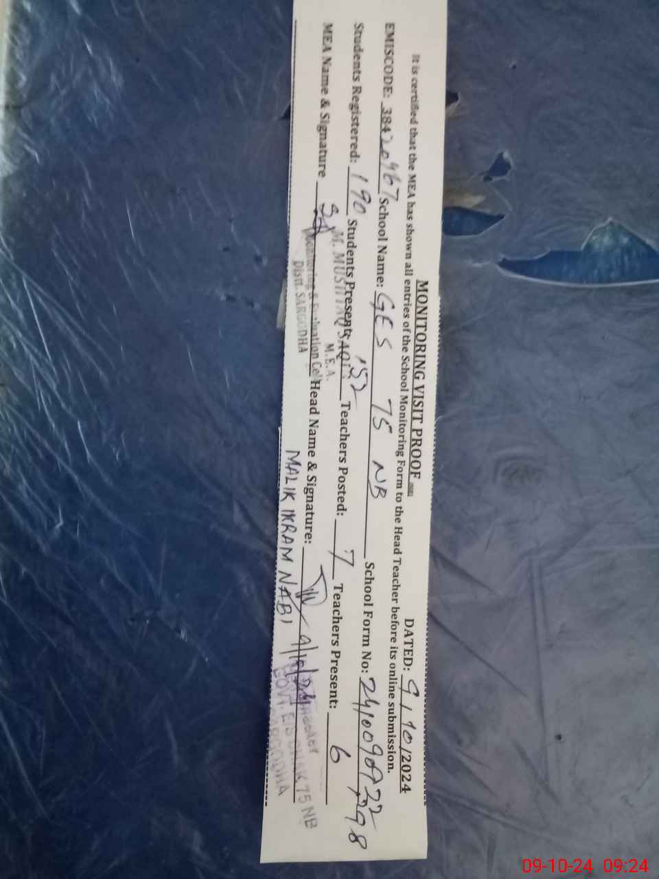 | EMIS Code: 38420467 | Name of School: GES CHAK NO.75 NB | |||