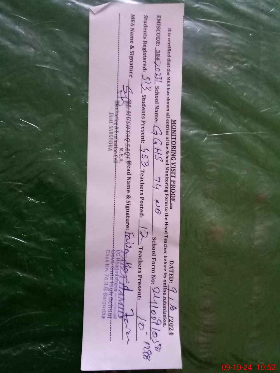 | EMIS Code: 38420231 | Name of School: GGHS CHAK NO.74 NB | |||
