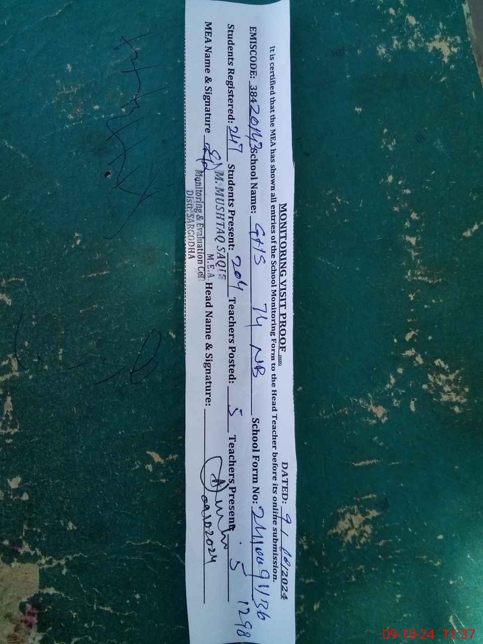 | EMIS Code: 38420143 | Name of School: GHS CHAK NO.74 NB | |||