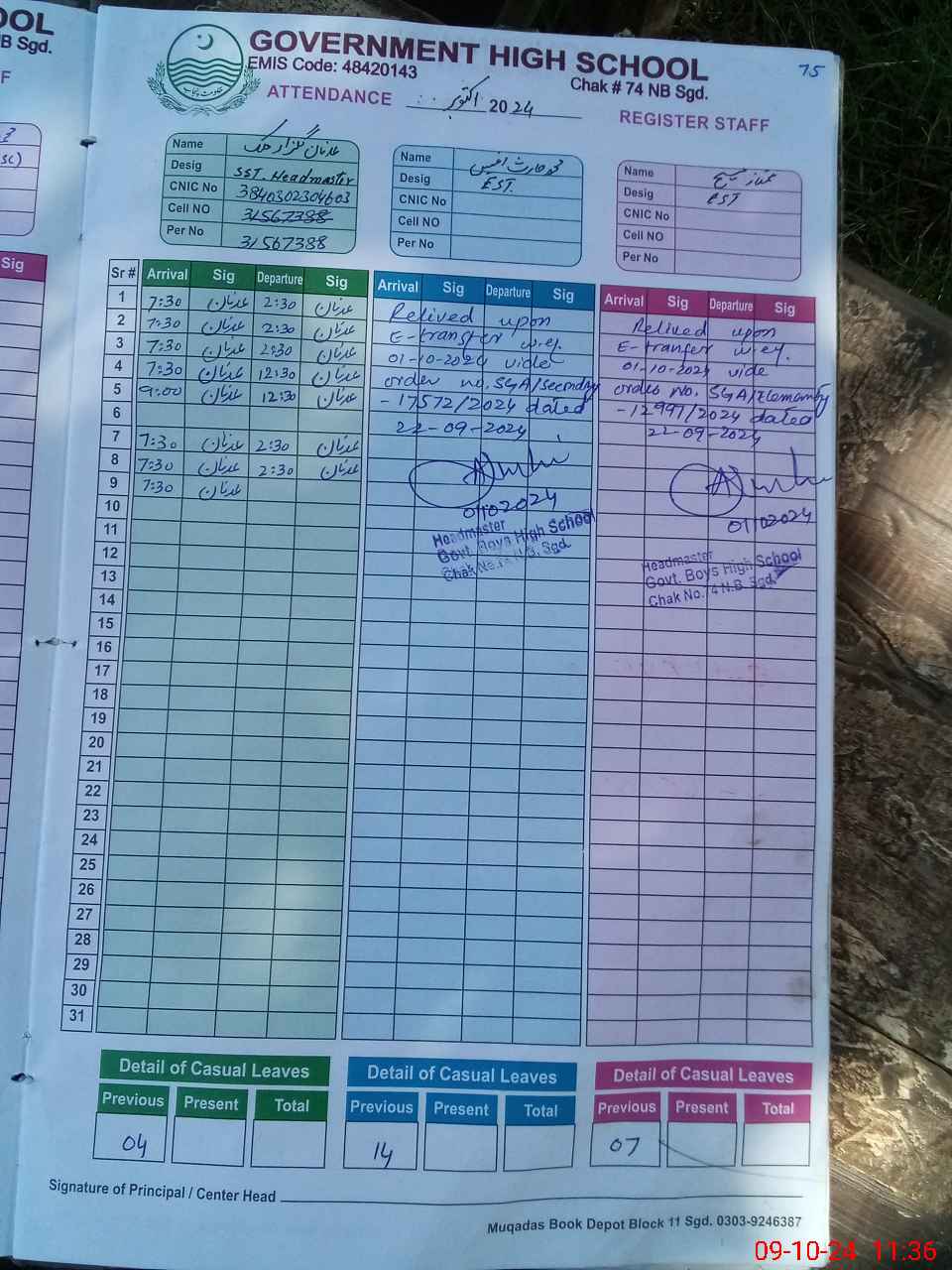 | Name: AD**** GU**** Designation: (School Headmaster's/Headmistress's) HEADMASTER SST Phone/Cell Number: 03**** |