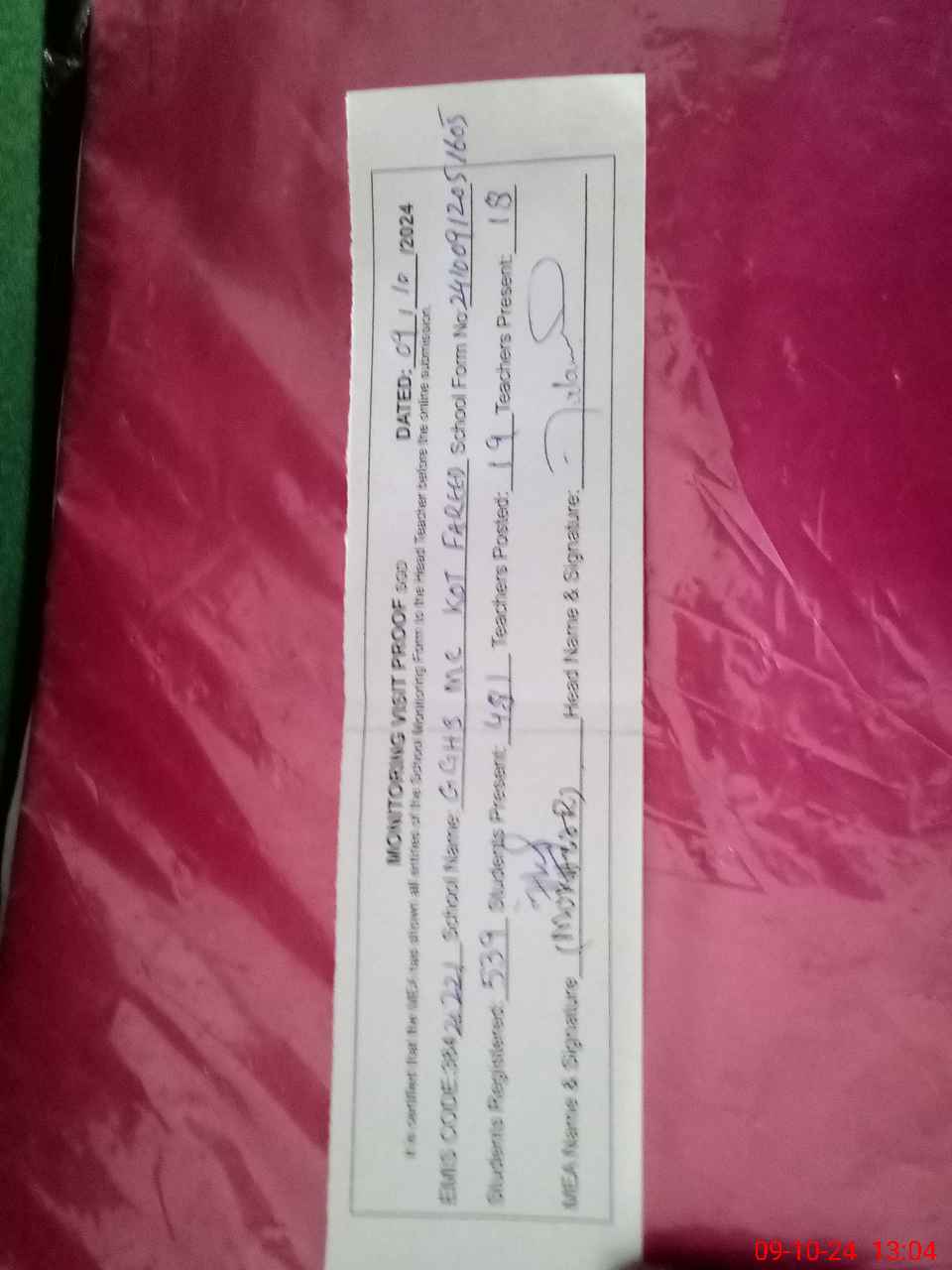 | EMIS Code: 38420221 | Name of School: GGHS MC KOT FAREED | |||