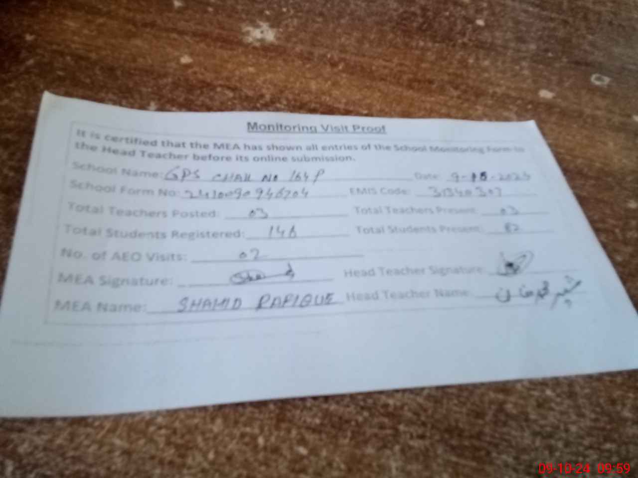 | EMIS Code: 31340307 | Name of School: GPS CHAK NO 164/P | |||