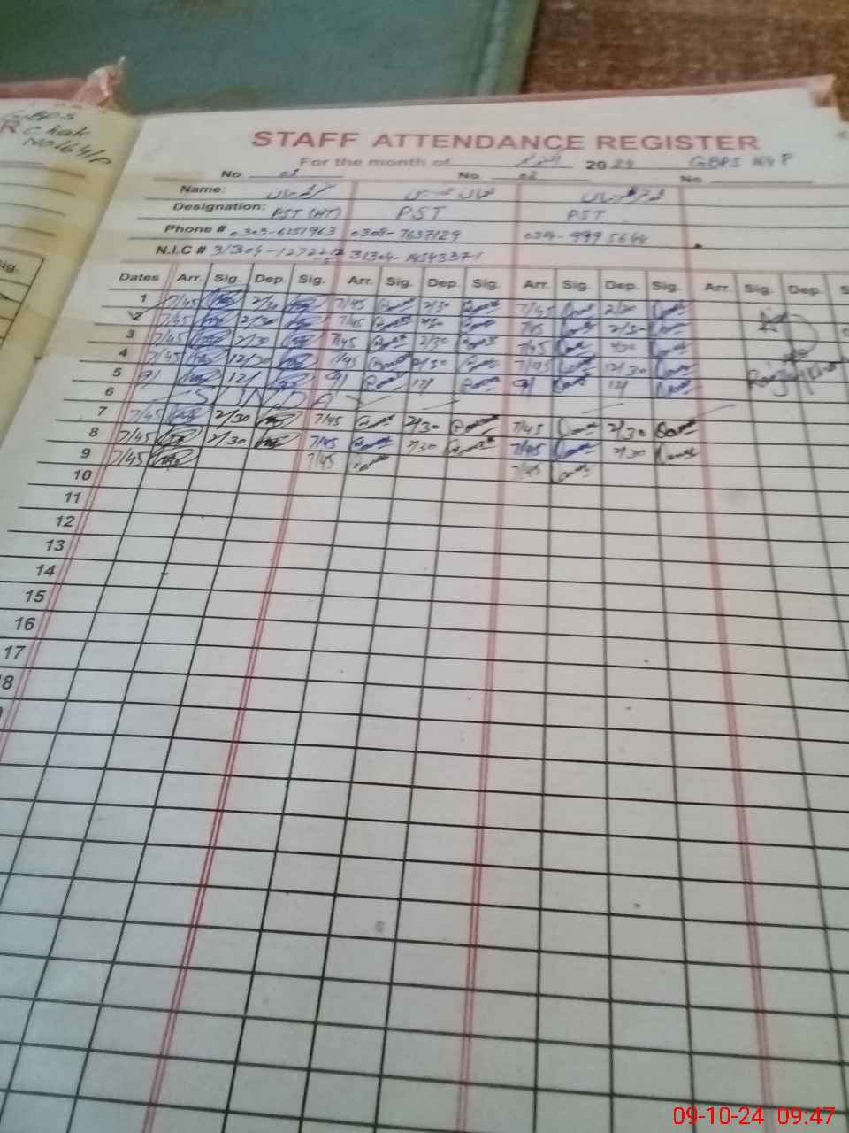 | Name: No**** Hu**** Designation: (School Headmaster's/Headmistress's) PST Phone/Cell Number: 03**** |