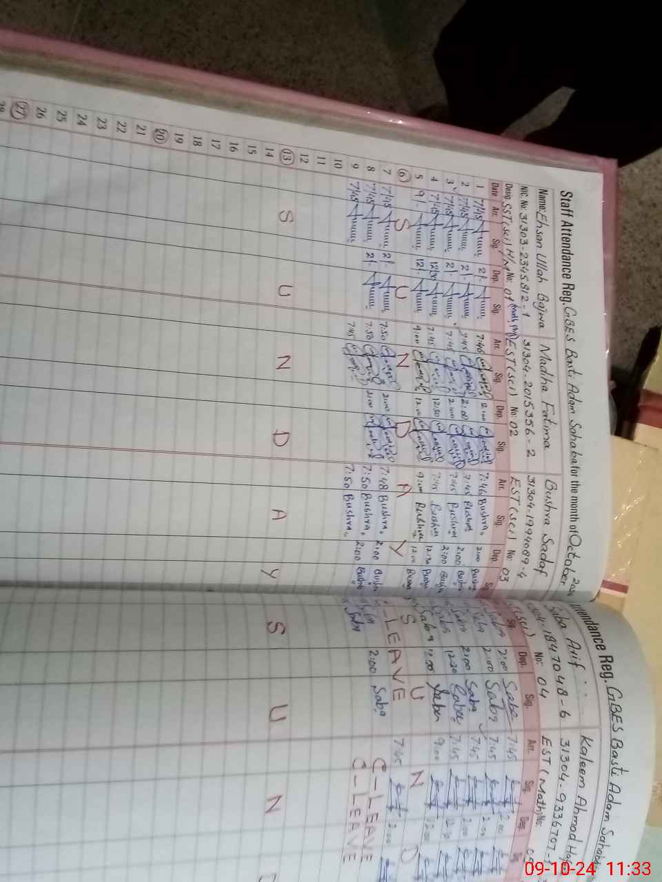 | CNIC | Full Name | Designation | R/C | Absence During Last Calender Month |