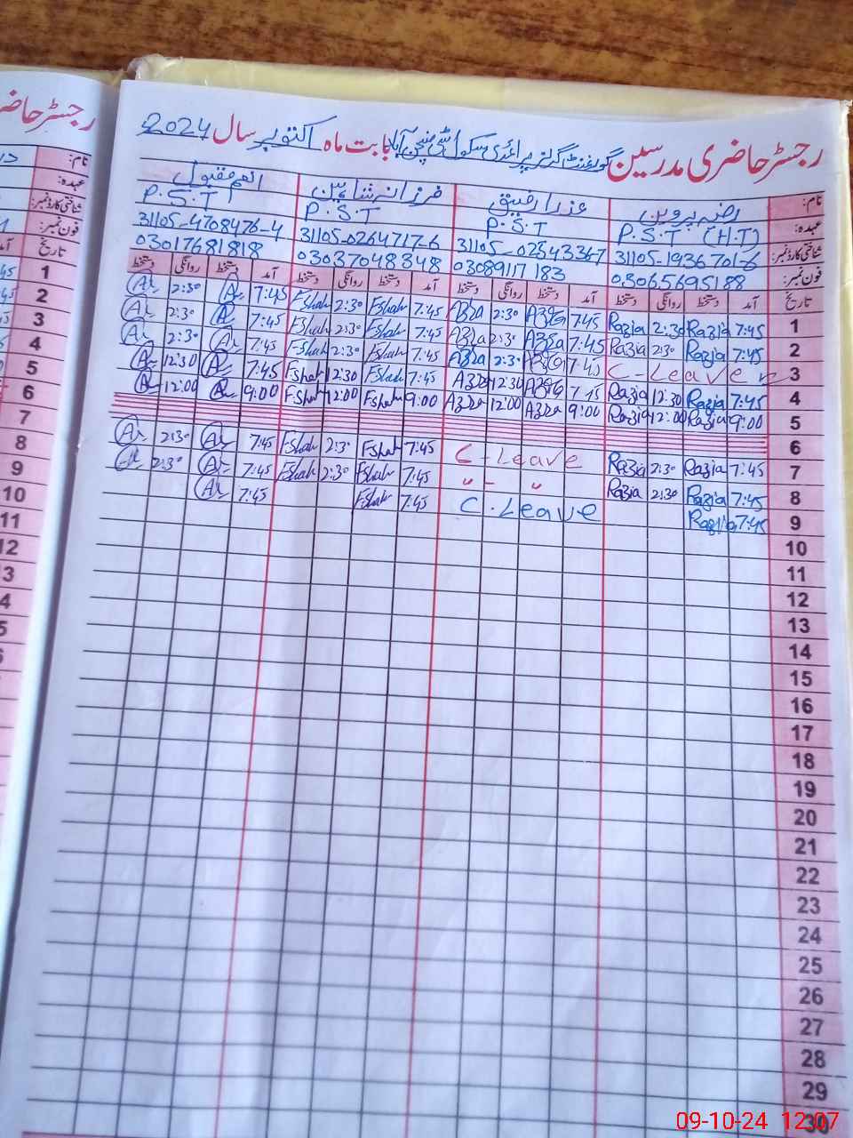 | Name: RA**** PA**** Designation: (School Headmaster's/Headmistress's) PST Phone/Cell Number: 03**** |