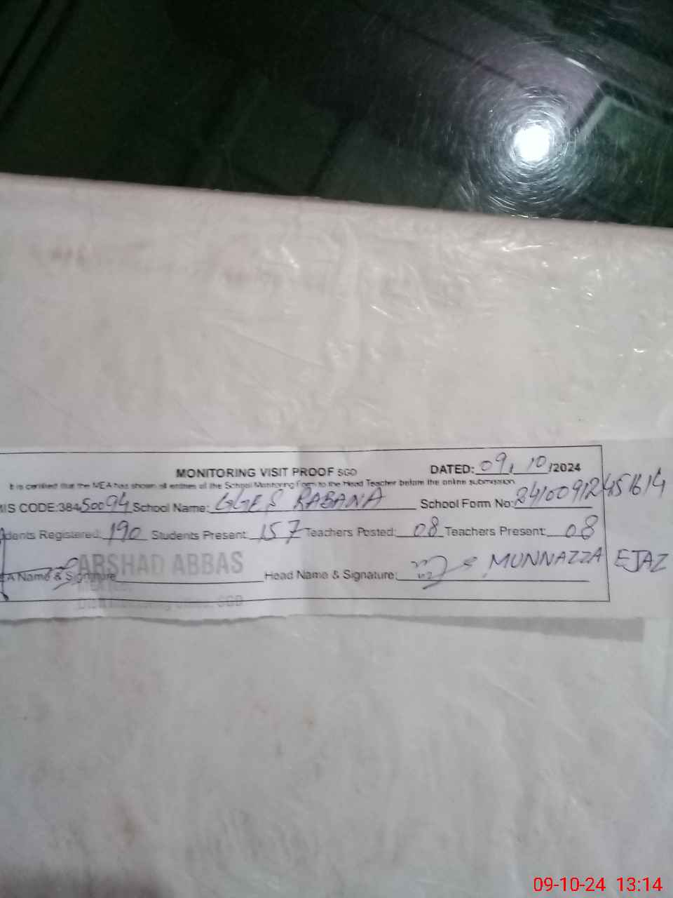 | Certified that this School was Inspected by the Undersigned MEA/DMO Today and the Information Stated Above is as Per Record. | |||||