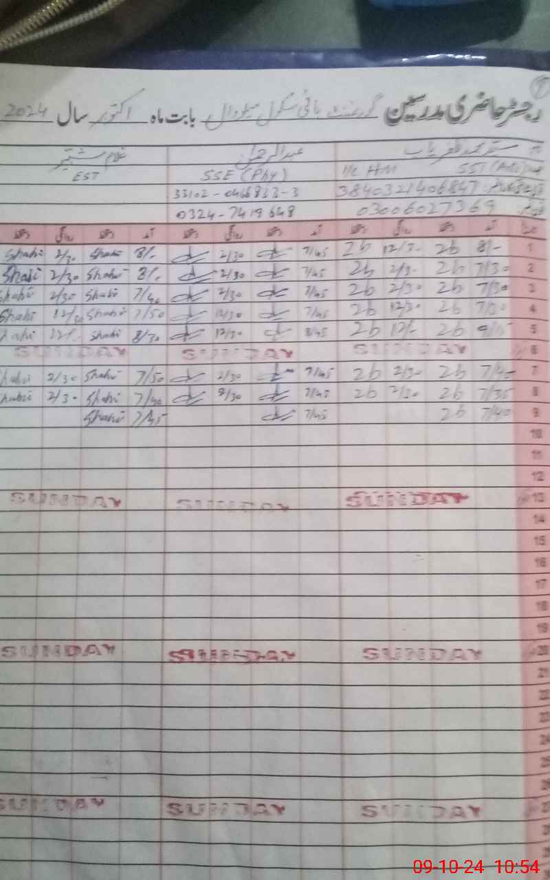 | Name: Sy**** Mu**** Za**** Designation: (School Headmaster's/Headmistress's) Inch HEADMASTER Phone/Cell Number: 03**** |