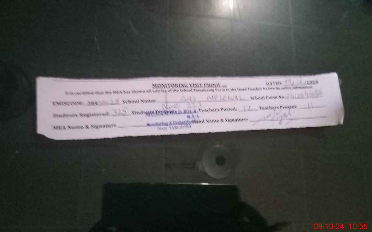 | EMIS Code: 38470028 | Name of School: GHS MELO WAL | |||