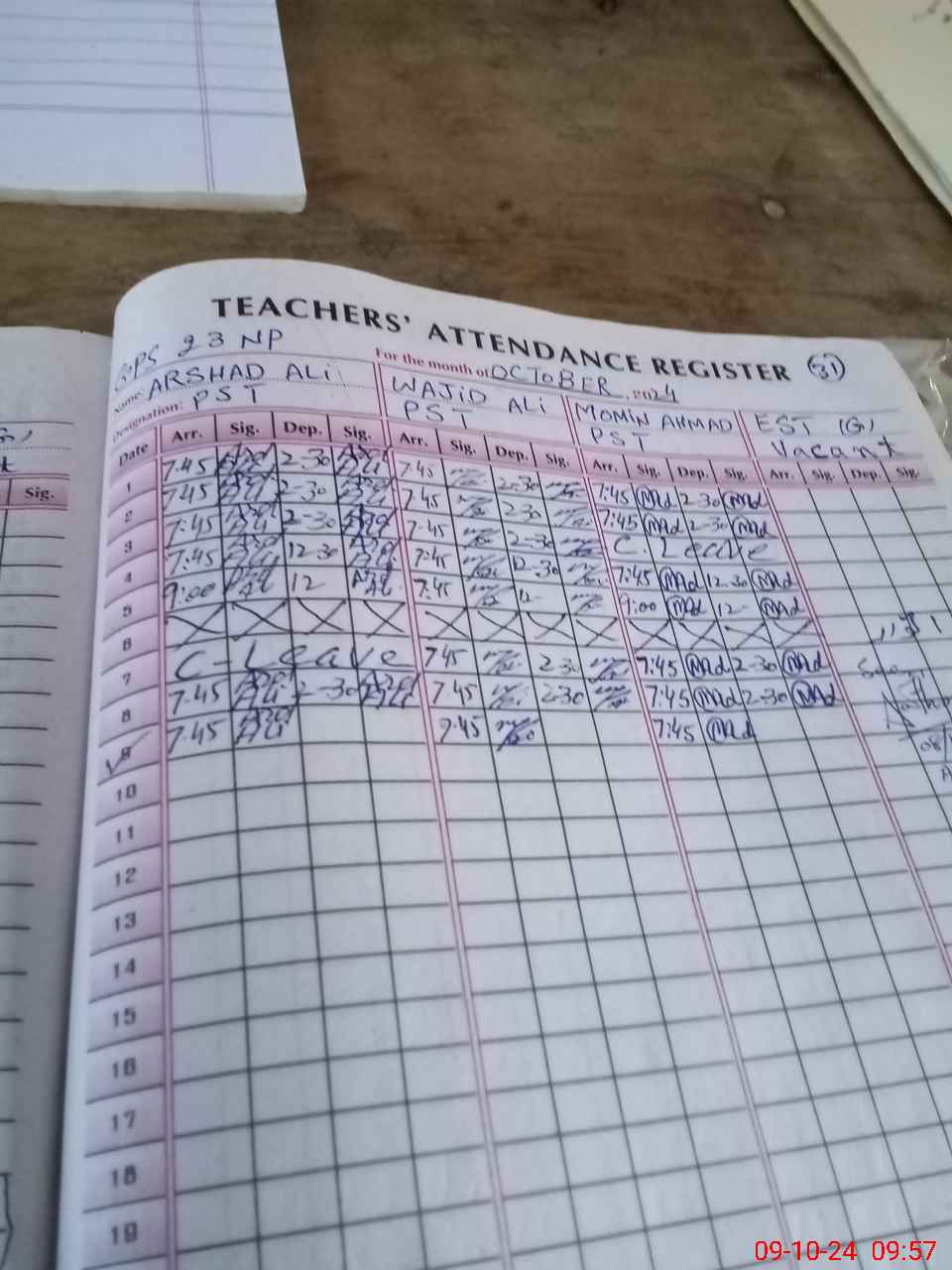| Name: AR**** AL**** Designation: (School Headmaster's/Headmistress's) PST Phone/Cell Number: 03**** |