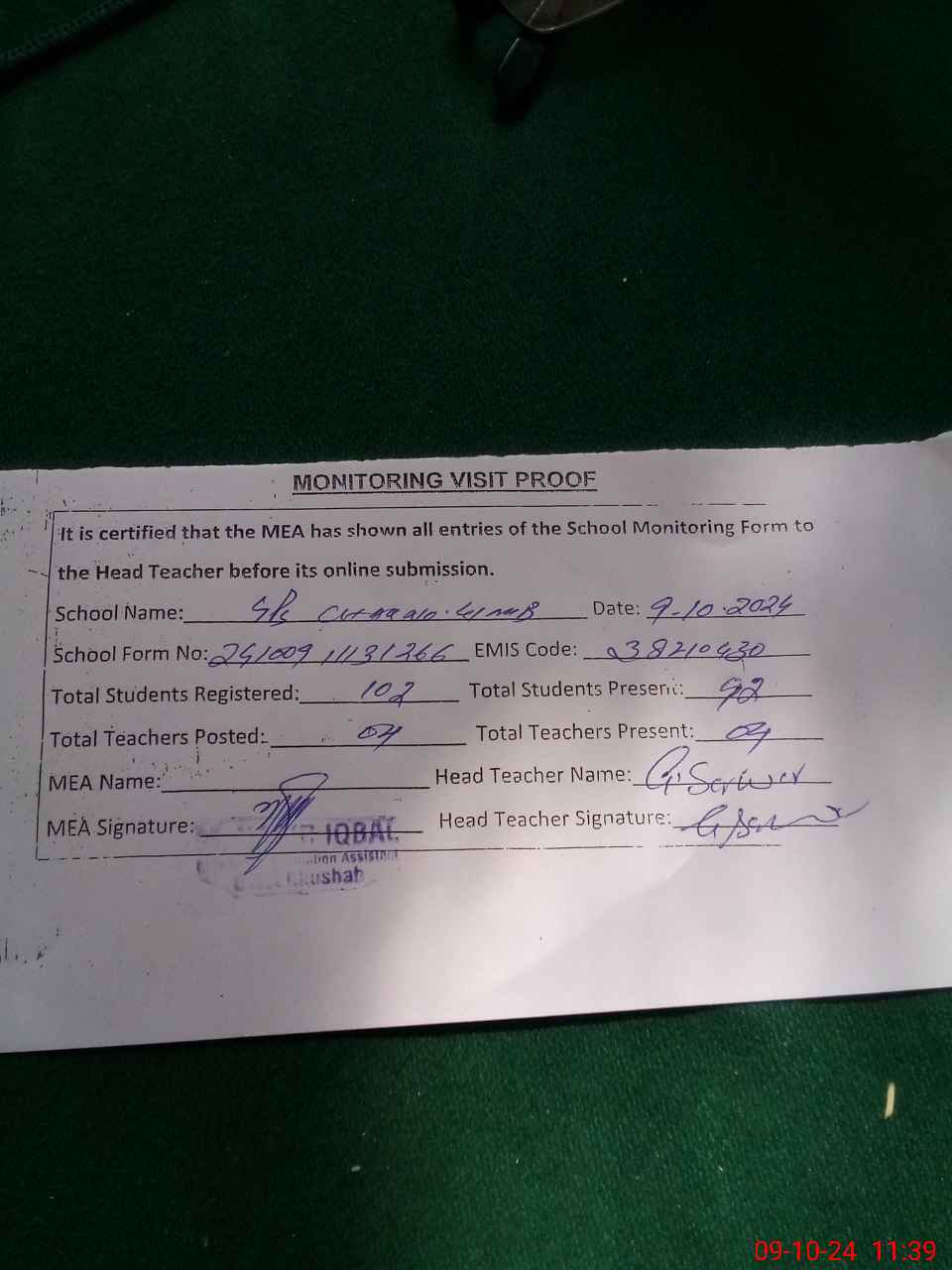 | EMIS Code: 38210430 | Name of School: GPS CHAK NO. 41 MB | |||