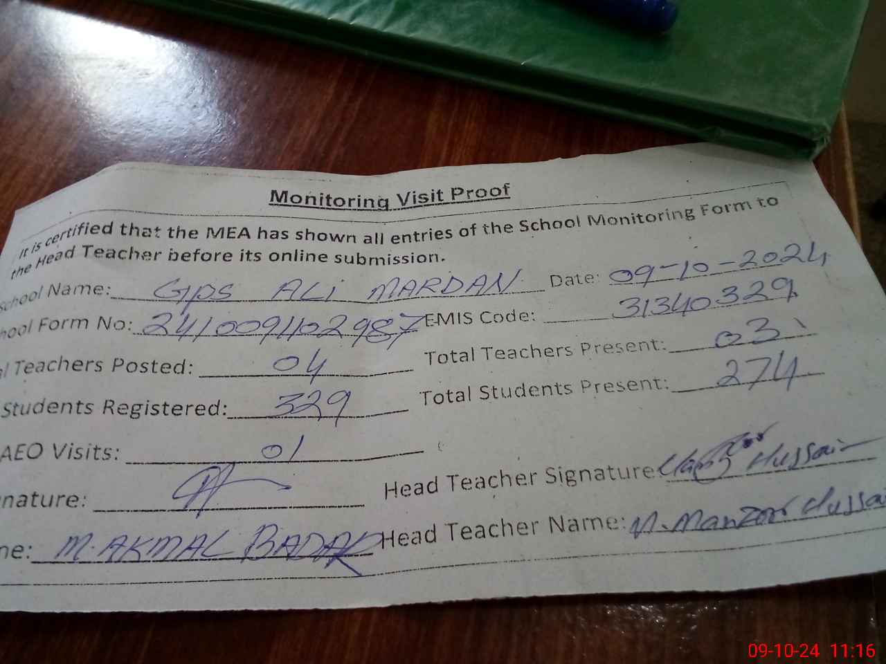 | EMIS Code: 31340329 | Name of School: GPS ALI MURADAN | |||