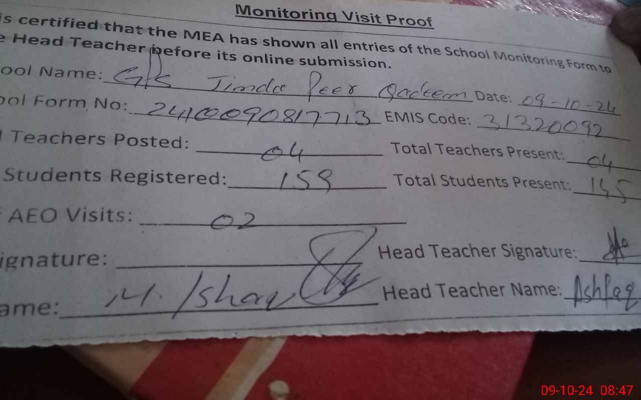 | EMIS Code: 31320092 | Name of School: GPS JINDU PEER QADEEM | |||