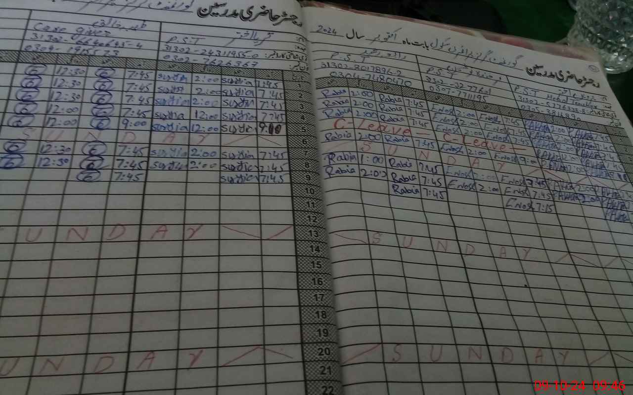 | CNIC | Full Name | Designation | R/C | Absence During Last Calender Month |