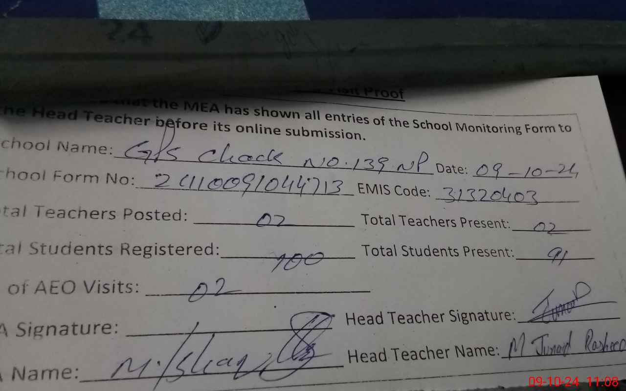 | EMIS Code: 31320403 | Name of School: GPS CHAK 139 NP | |||