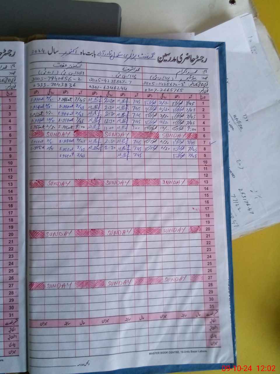 | CNIC | Full Name | Designation | R/C | Absence During Last Calender Month |