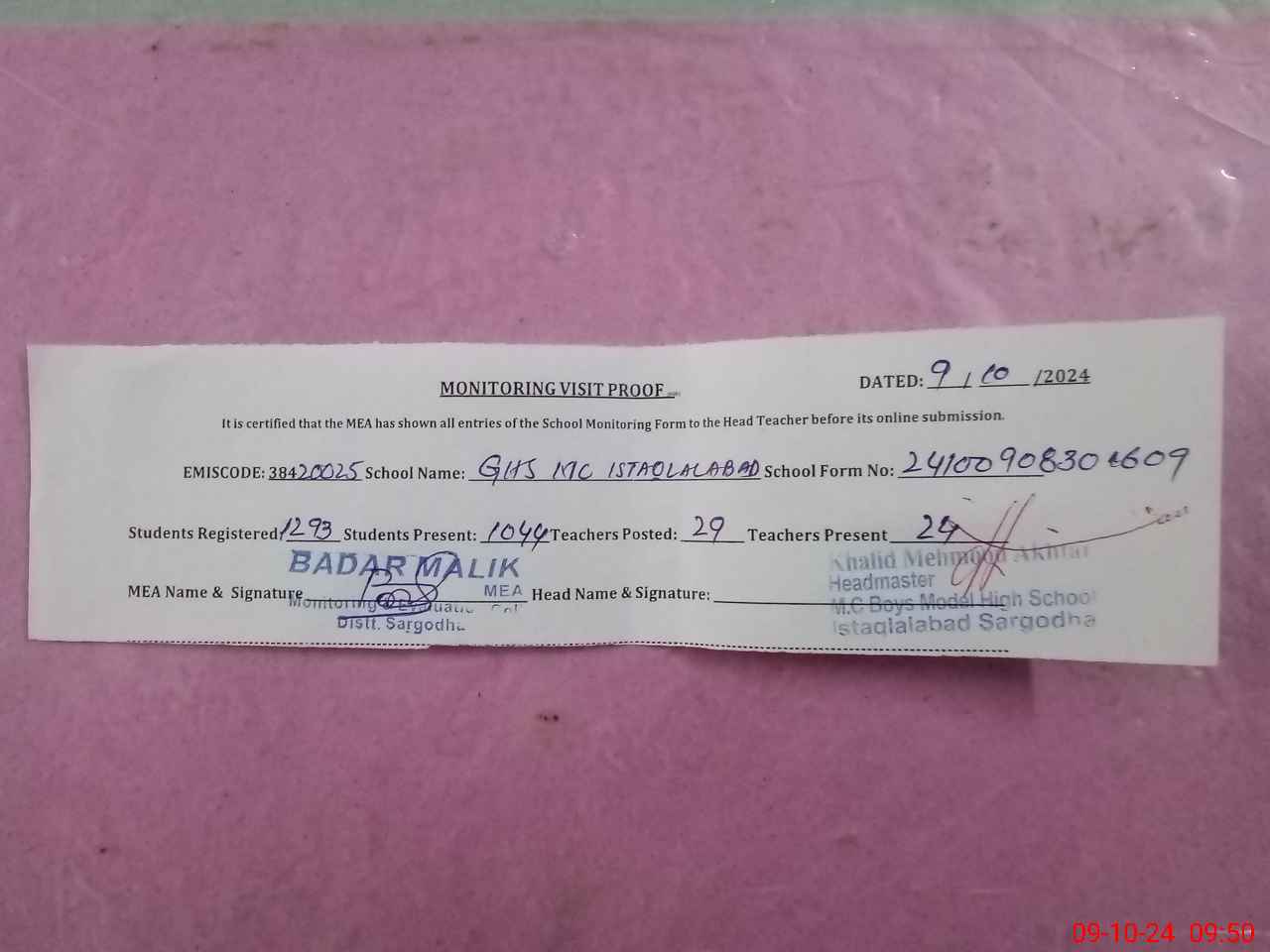 | EMIS Code: 38420025 | Name of School: GHS MC ISTAQLAL ABAD SARGODHA | |||
