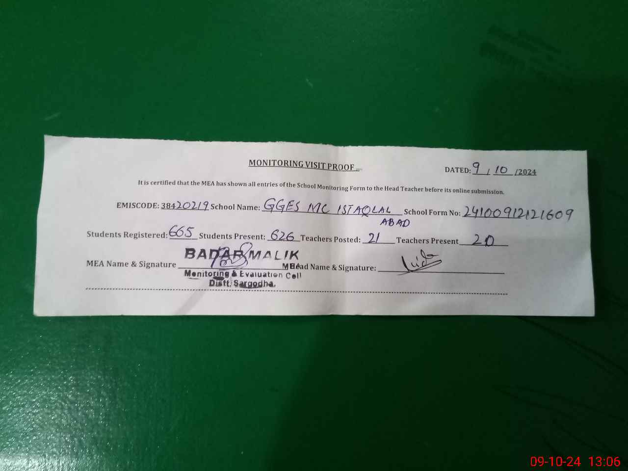 | EMIS Code: 38420219 | Name of School: GGES MC ISTAQLAL ABAD SARGODHA | |||