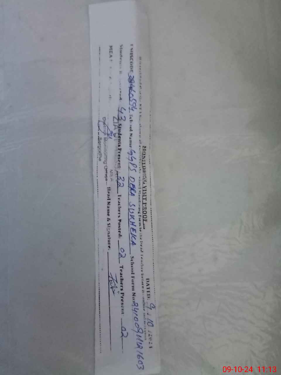 | Monitoring Date: 09-10-2024 | Start Time: 09-10-2024 10:50 AM | End Time: 09-10-2024 11:14 AM | Name of MEA: ZI**** ULHA**** | |