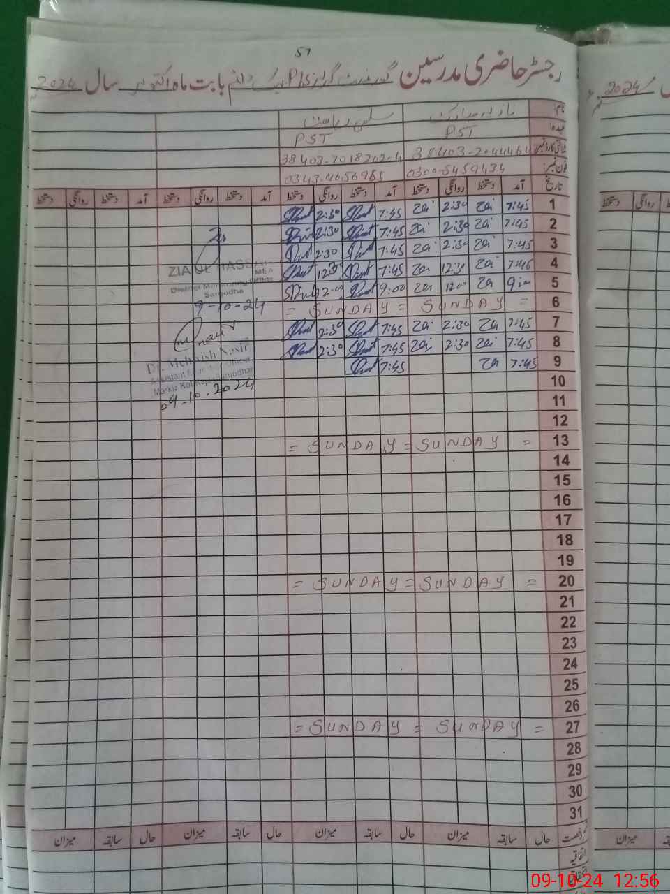 | Name: NA**** MU**** Designation: (School Headmaster's/Headmistress's) PST Phone/Cell Number: 03**** |