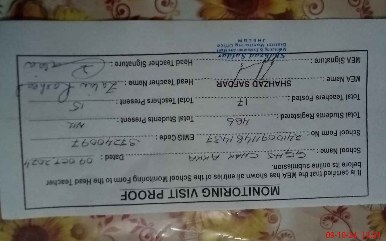 | EMIS Code: 37240097 | Name of School: GGHS CHAK AKKA | |||