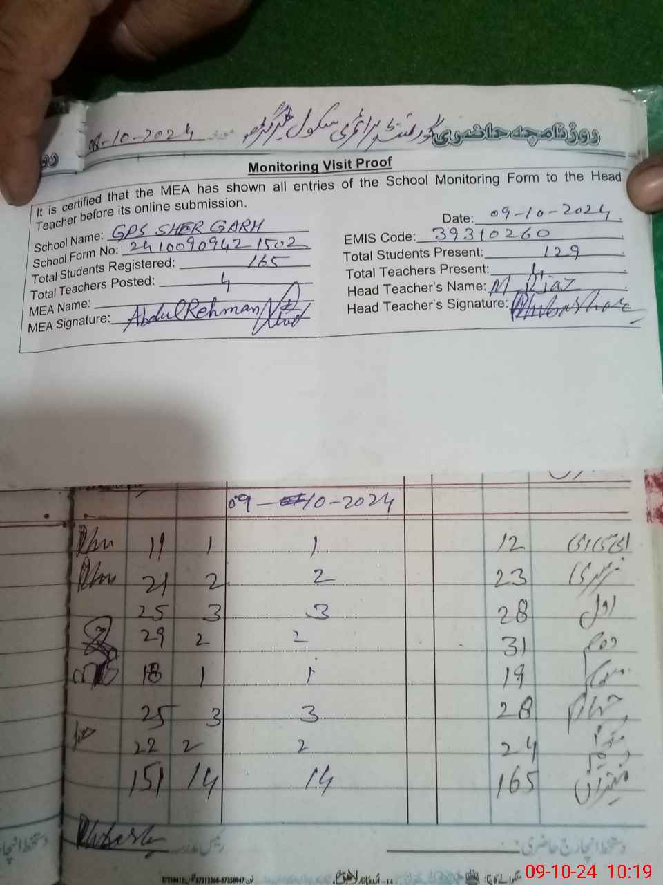 | EMIS Code: 39310260 | Name of School: GPS SHER GARH MOHALLA NOOR SHAH | |||